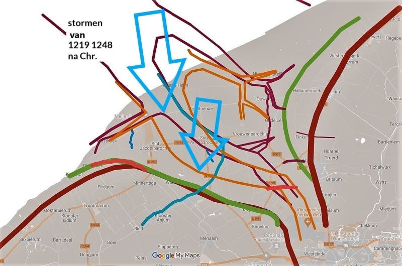 ook meer binnenlands bij de Stienzer Hogedyk, de Griene Dyk, de Alddyk en de Hearewei. Alleen verder archeologisch onderzoek kan aantonen wanneer die precies hebben plaatsgevonden. Van een tiental dijkdoorbraken heb ik wel het jaar van de doorbraak
